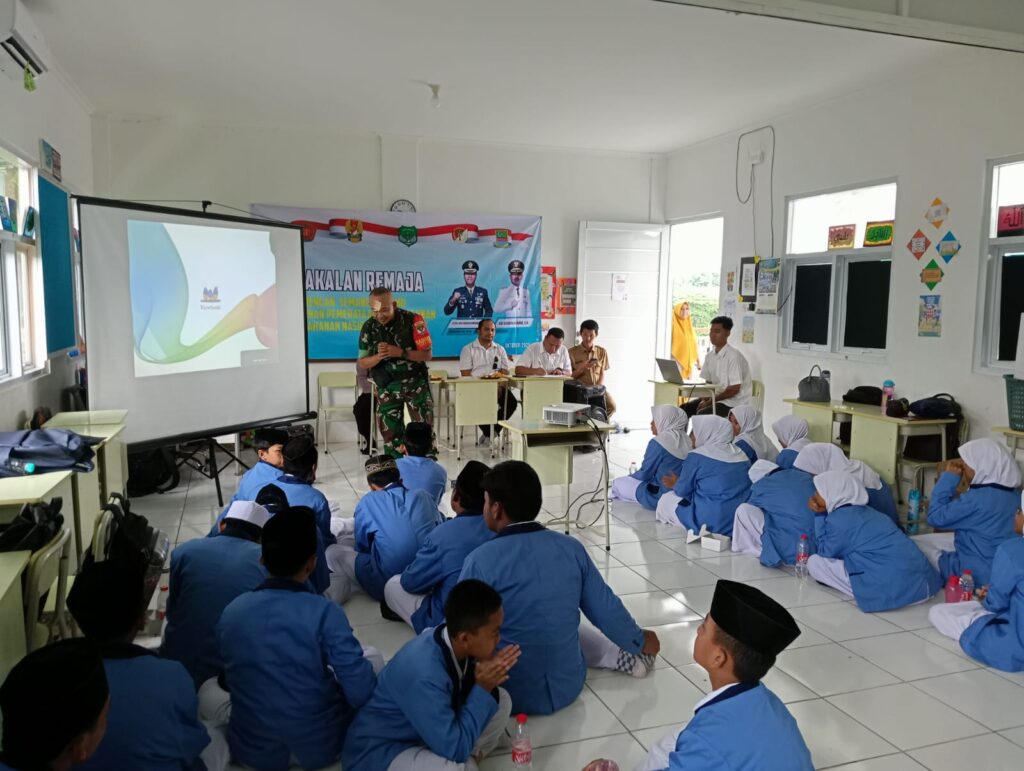 Kabupaten Bekasi, teraktual.co.id – Satuan Tugas TNI Manunggal Membangun Desa (TMMD) ke-126 Kodim 0509/Kabupaten Bekasi bersama Polrestro Bekasi menggelar kegiatan penyuluhan tentang kenakalan remaja di SMP Pondok Pesantren Nurul Amin, Desa Sukasari, Perumahan Mega Regensi Blok A RT 07 RW 14, Kecamatan Serang Baru, Senin (13/10/2025).