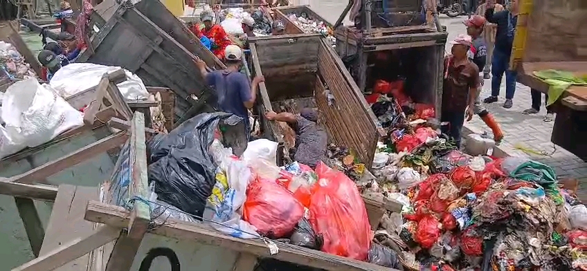Untuk mencegah dampak yang lebih luas, satu unit truk pengangkut sampah dari UPTD kebersihan terlihat disiagakan di halaman kantor kelurahan guna mengangkut sampah yang terlanjur berserakan.
